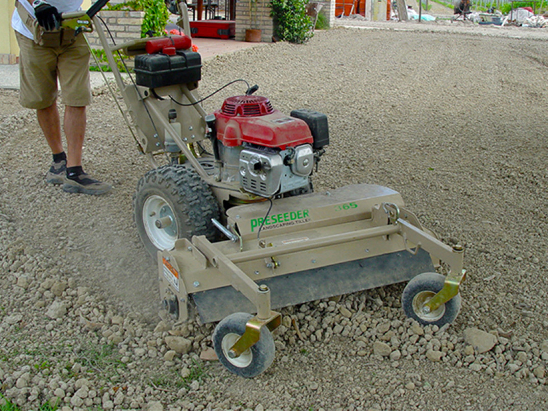 Il rastrello a motore Pre-Seeder TURF TEQ ottimizza la preparazione del letto di semina. In un solo passaggio rastrella, frantuma e livella terreni di medie dimensioni, riducendo tempi e interventi.